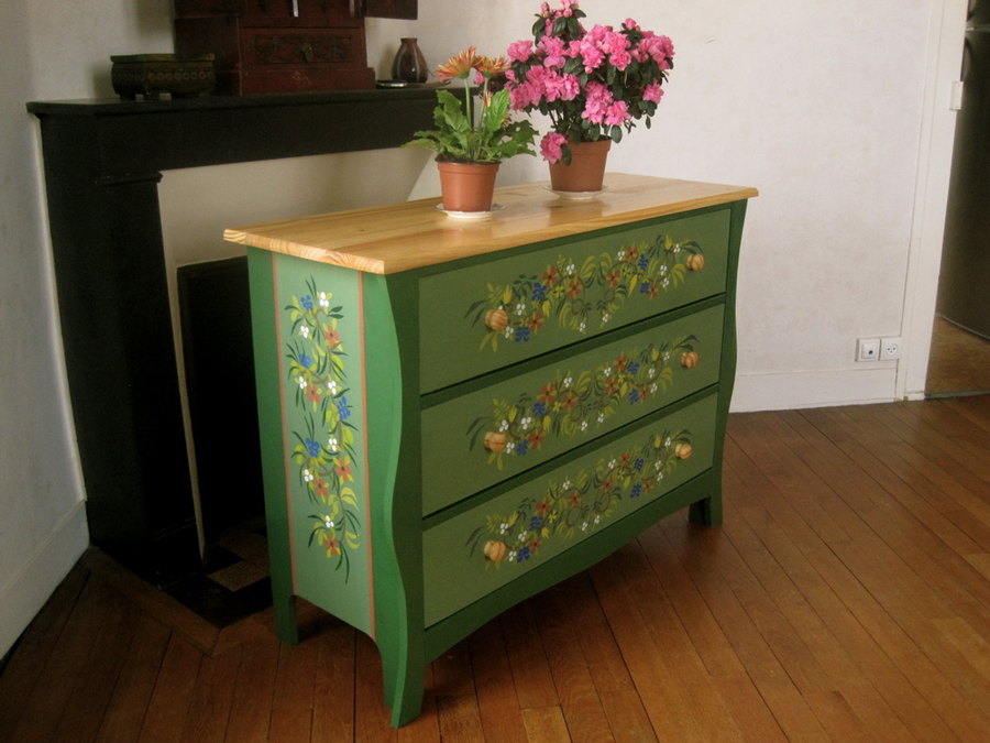 Commode peinte à la main, style provençal campagne