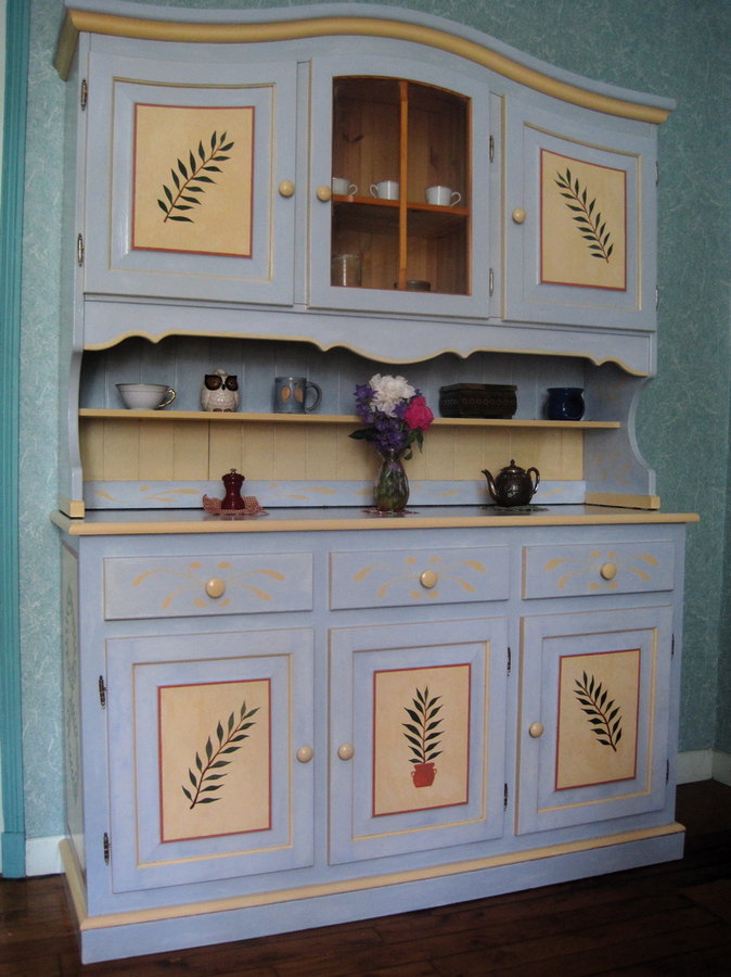 Vaisselier table et chaises provençal peints à la main, style shabby chic